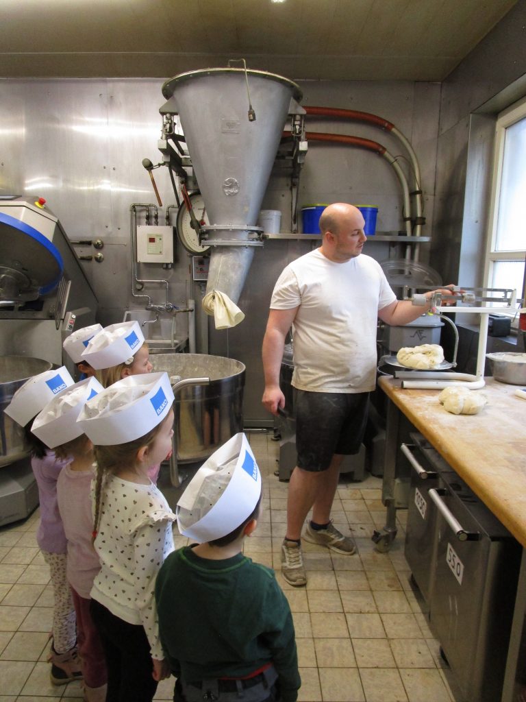 Aus diesem Grund besuchten sie die Bäckerei Walter. Bei einer Führung durch die Backstube erhielten die Vorschüler einen Einblick in das Bäckerhandwerk. Außerdem wurde gemeinsam mit den Kindern erarbeitet, welche Zutaten zum Backen der vielen verschiedenen Backwaren benötigt werden und welche technischen sowie manuelle Gerätschaften einem Bäckerbetrieb zur Verfügung stehen.
